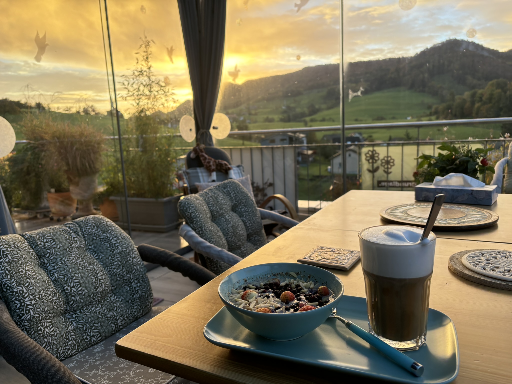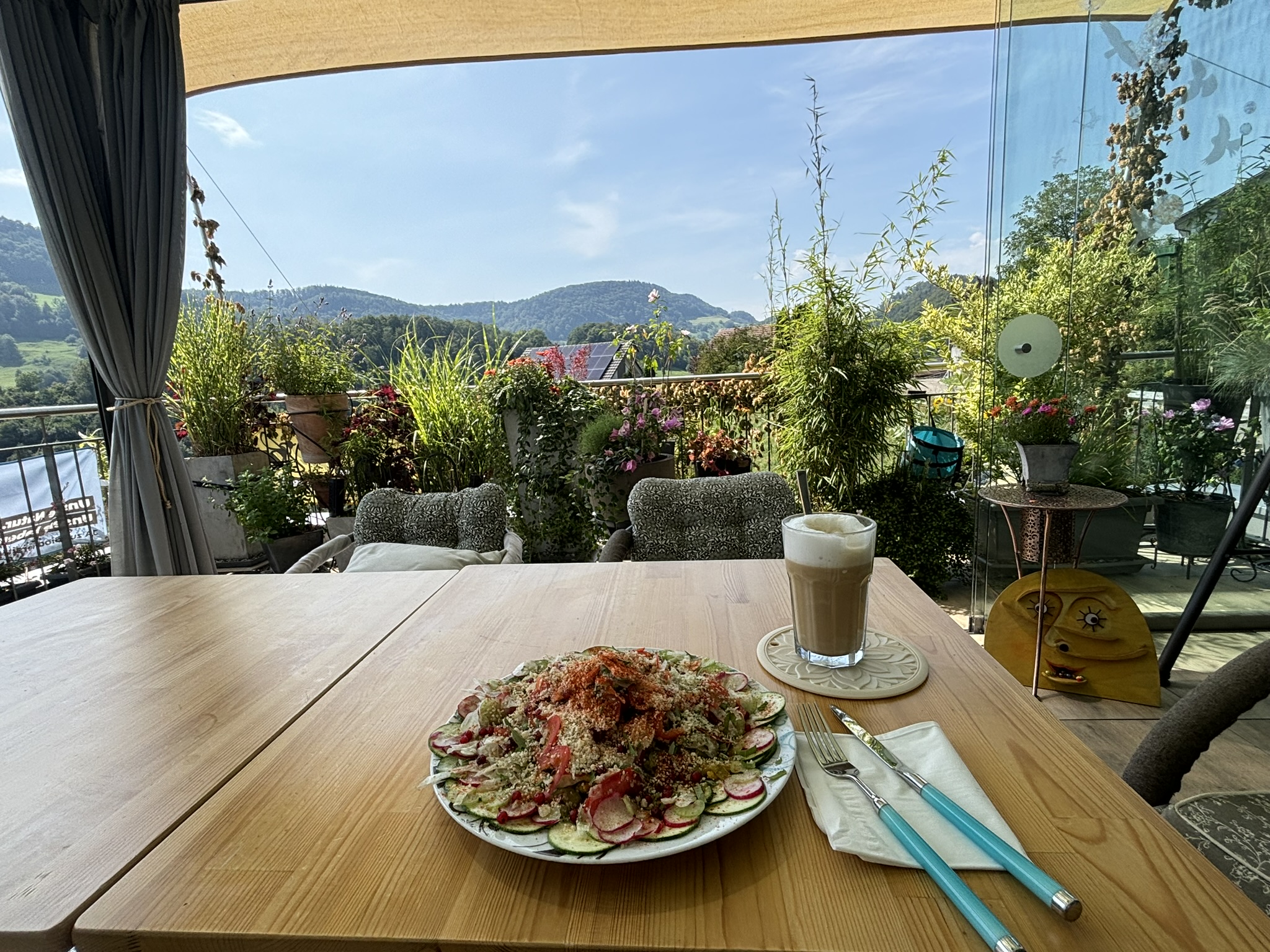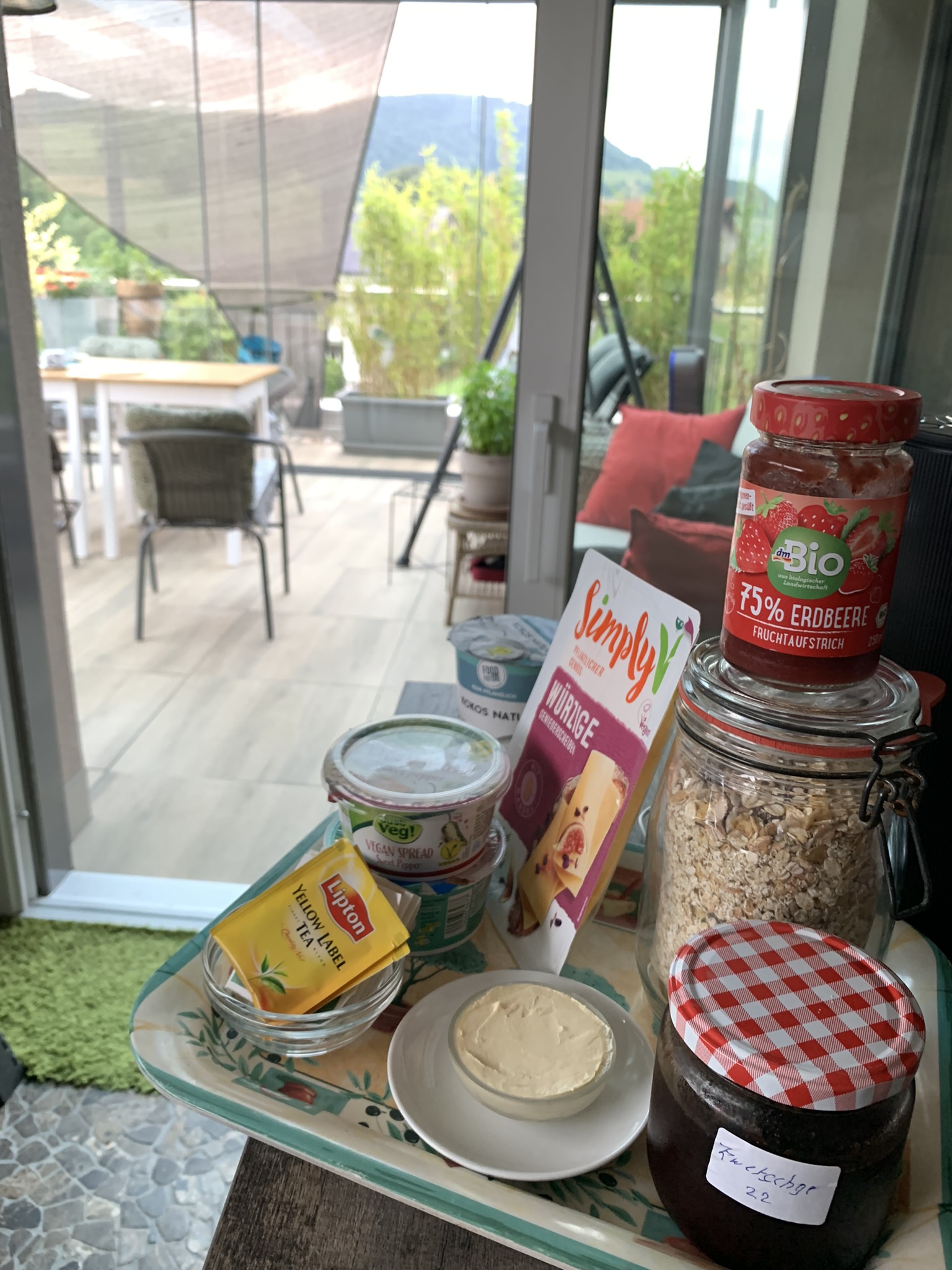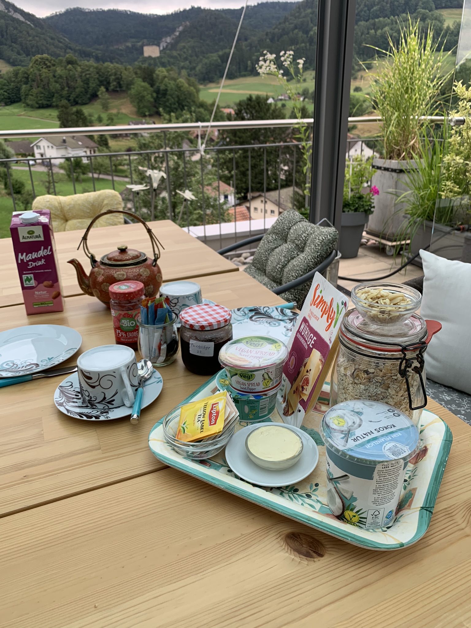 - Das vegane Frühstück mit Hauptsächlich Bio-Zutaten kostet 14.- / Tag.