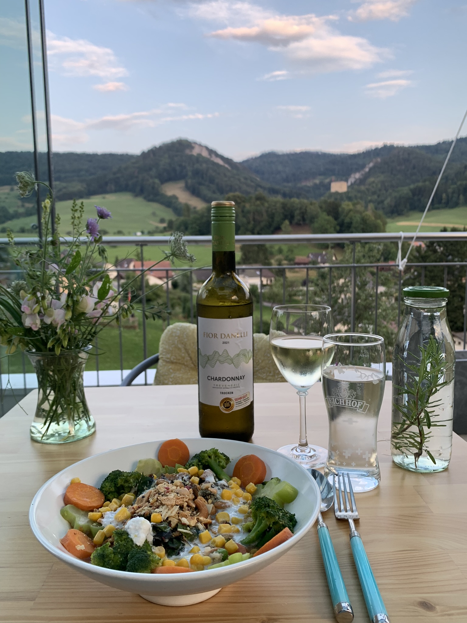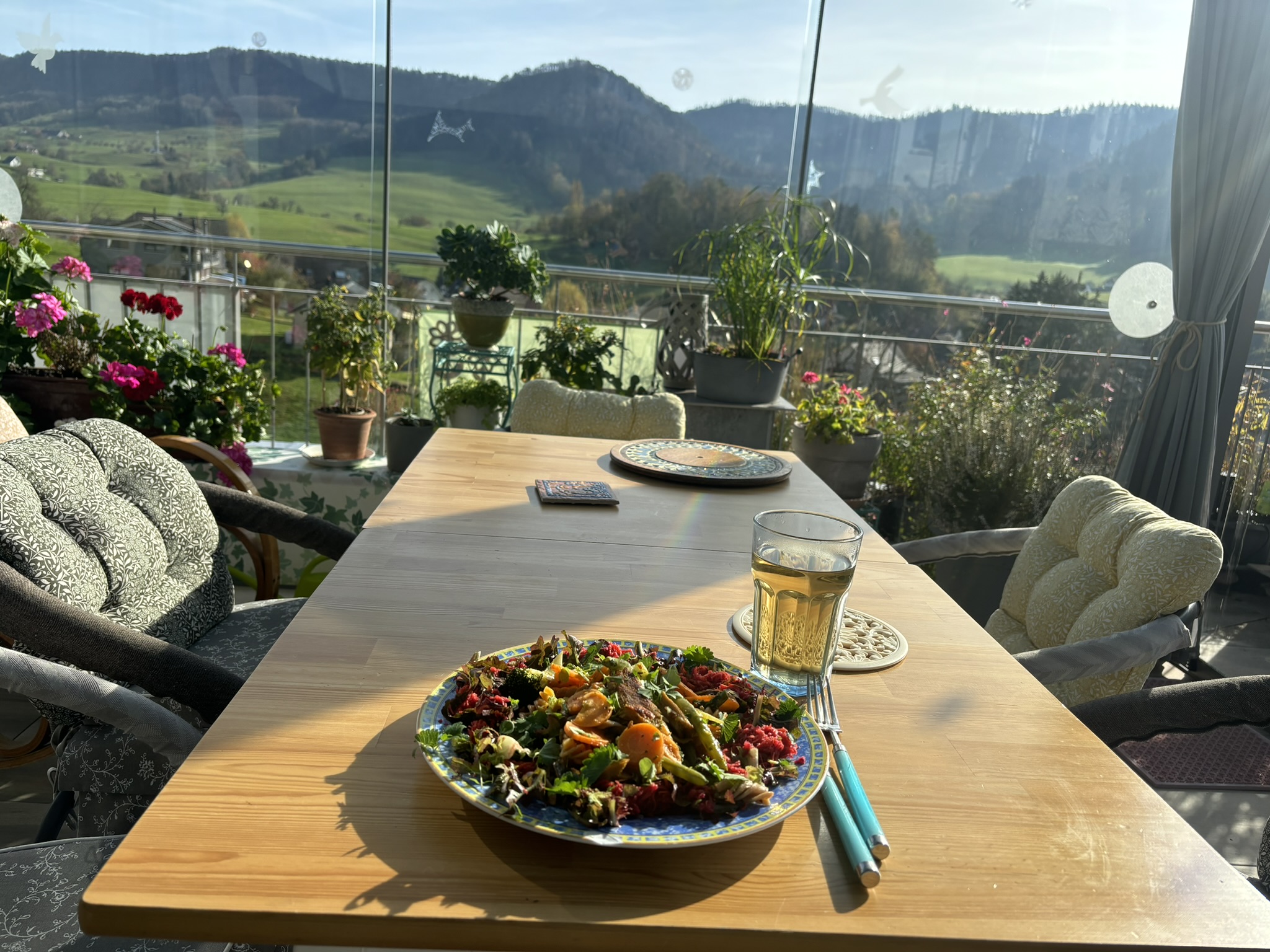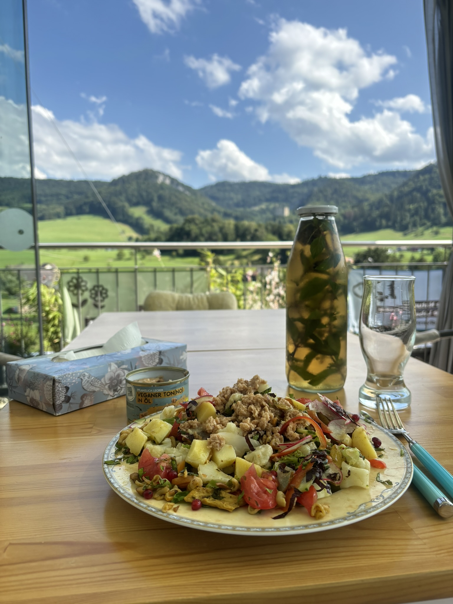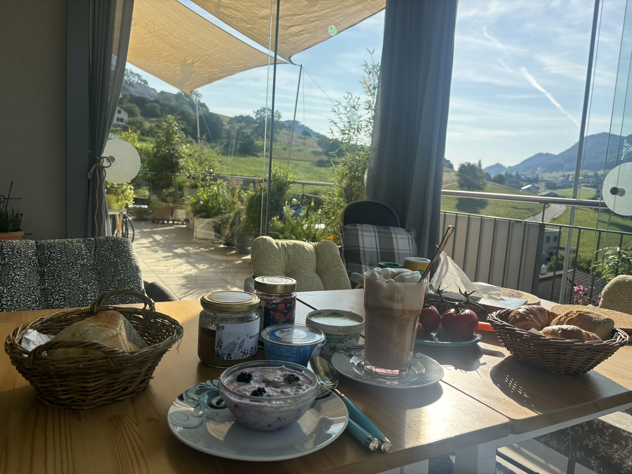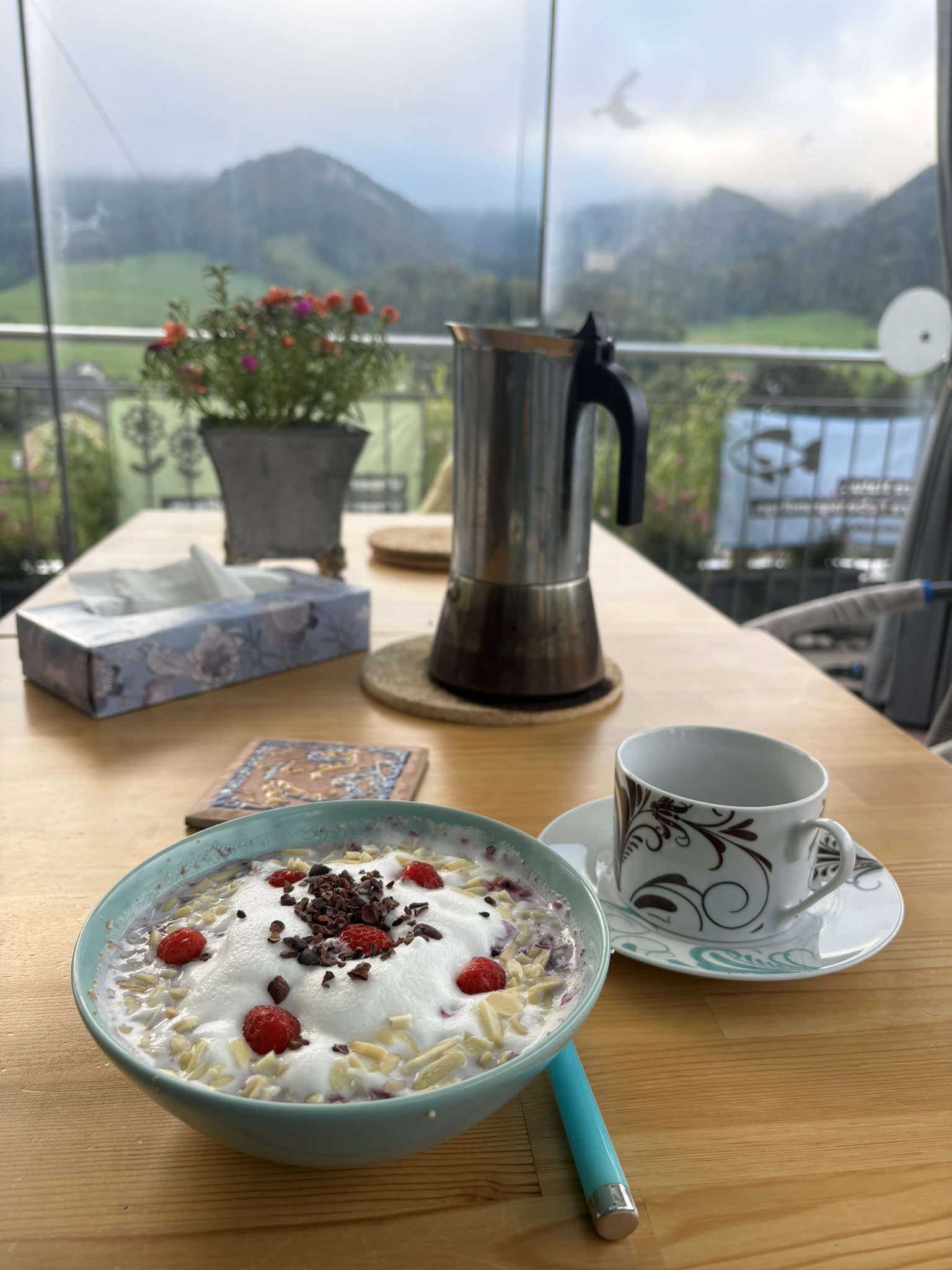 - Das vegane Frühstück mit Hauptsächlich Bio-Zutaten kostet 14.- / Tag.