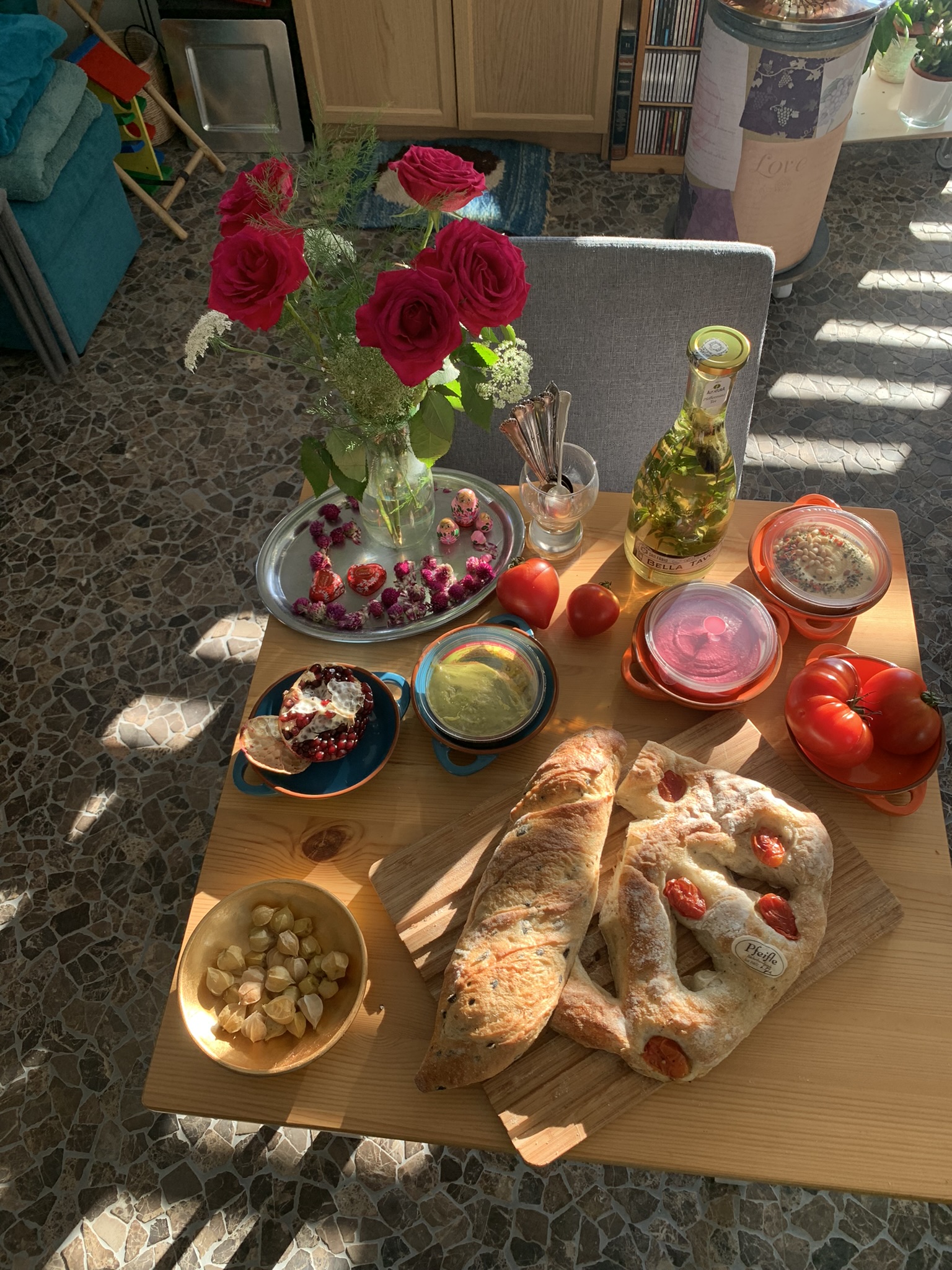 Humus mit knusprigen Oliven, Knobi- oder Kräuter-Baguett & was es feines gibt ... |